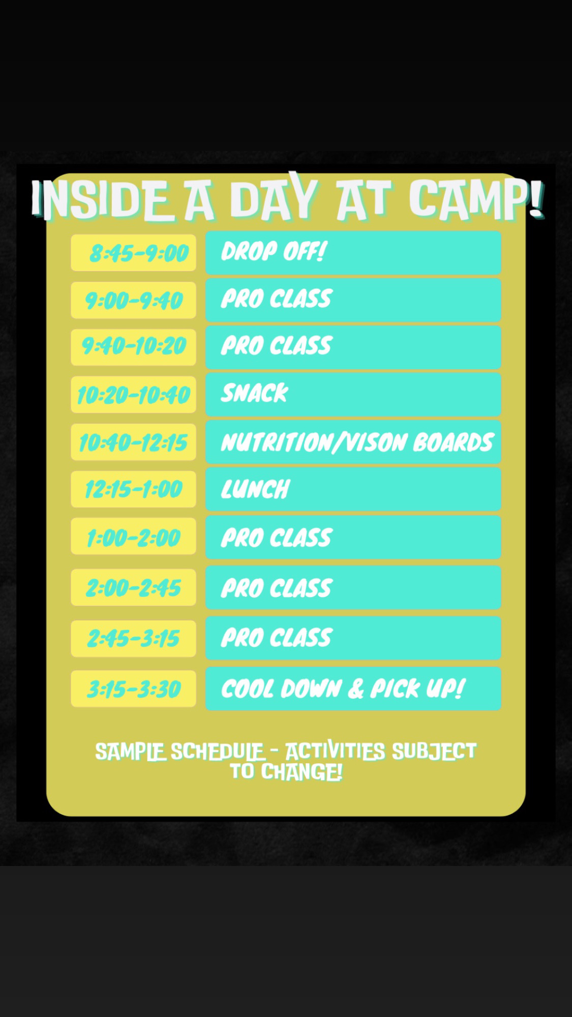 CAMPS Summer Dance Camp (Ages 5-10) CLICK TO RESISTER CLICK TO PAY Summer Intensive Dance Camp (Ages 11-17) CLICK TO RESISTER CLICK TO PAY
