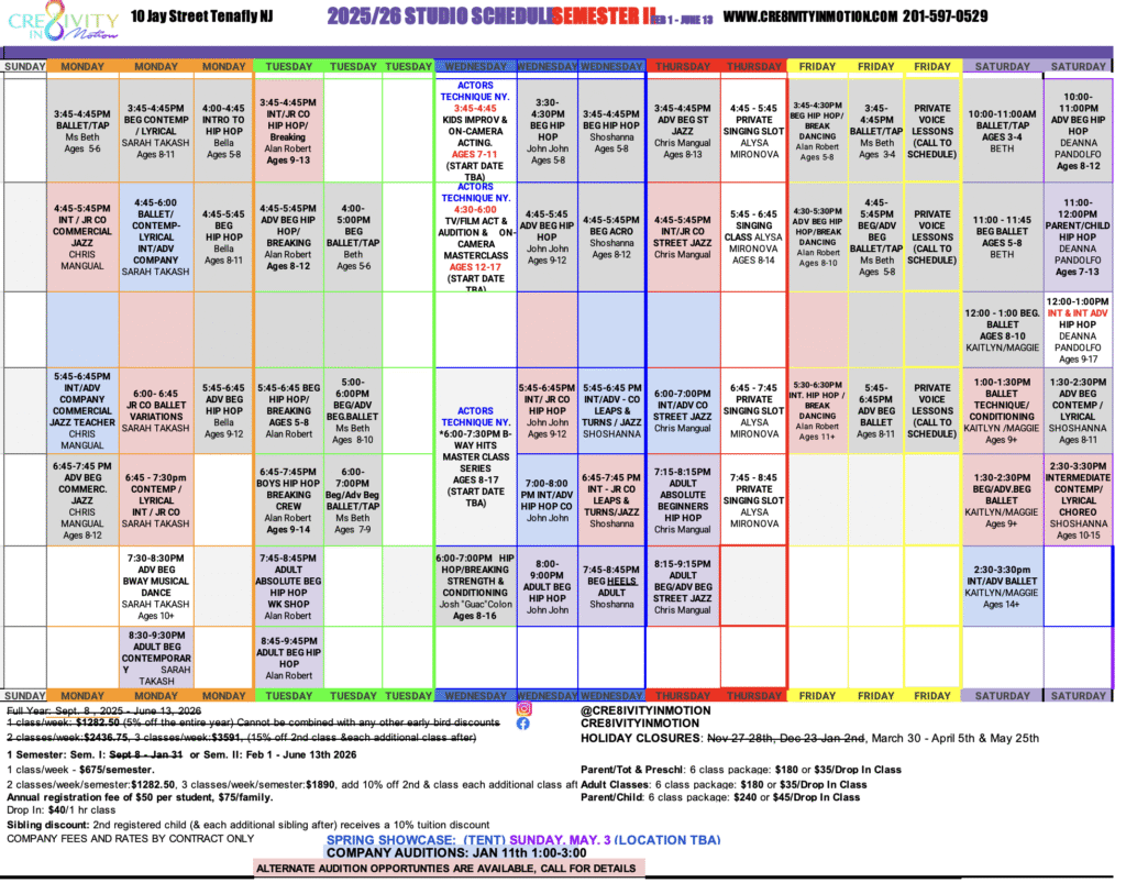 The Adult classes are Beginner to Advanced Levels, and the schedule is evolving to accommodate the growing demand. Call for more information 201-597-0529